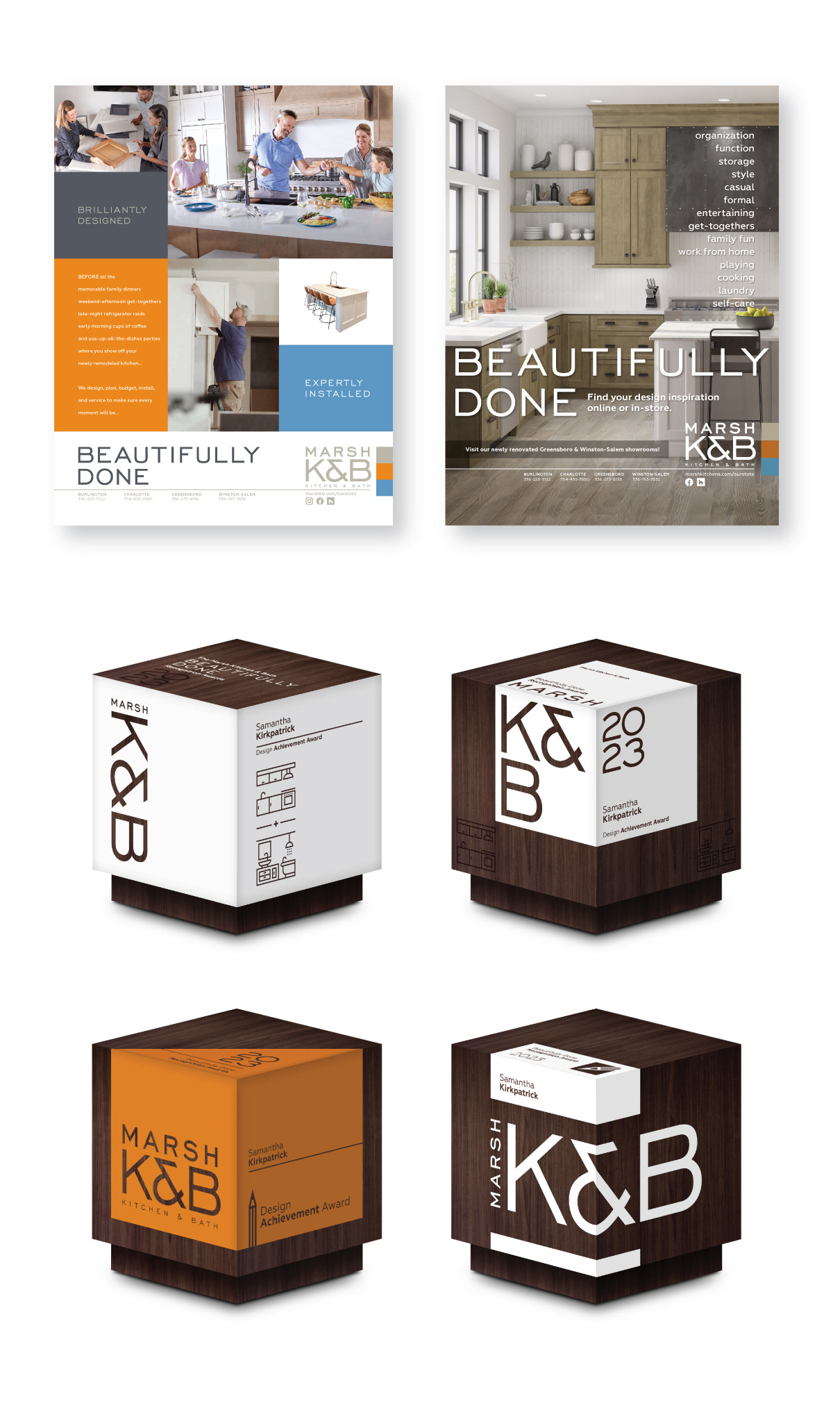 Above: Marsh K&B print advertising examples (Our State Magazine). Internal company design awards creation.